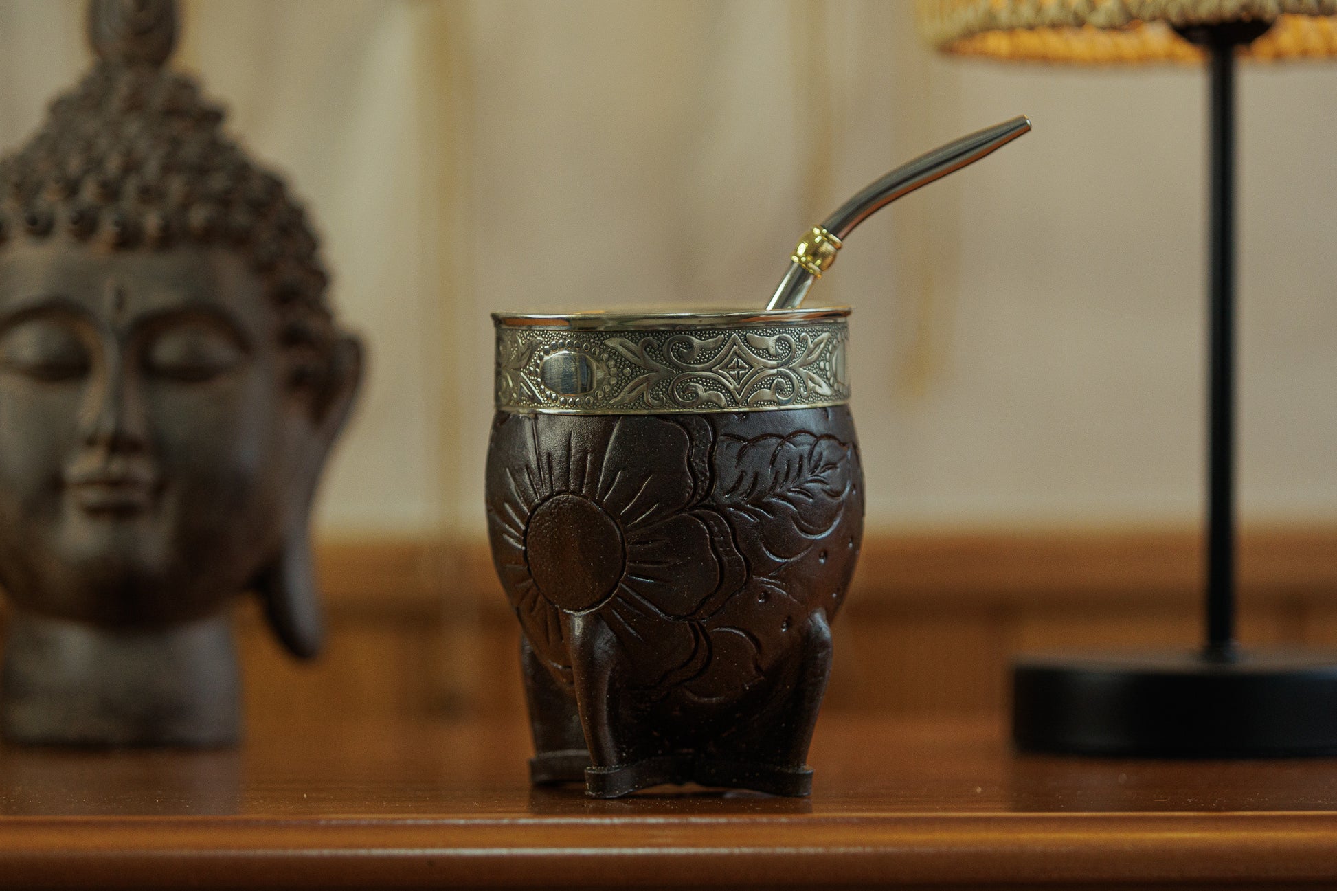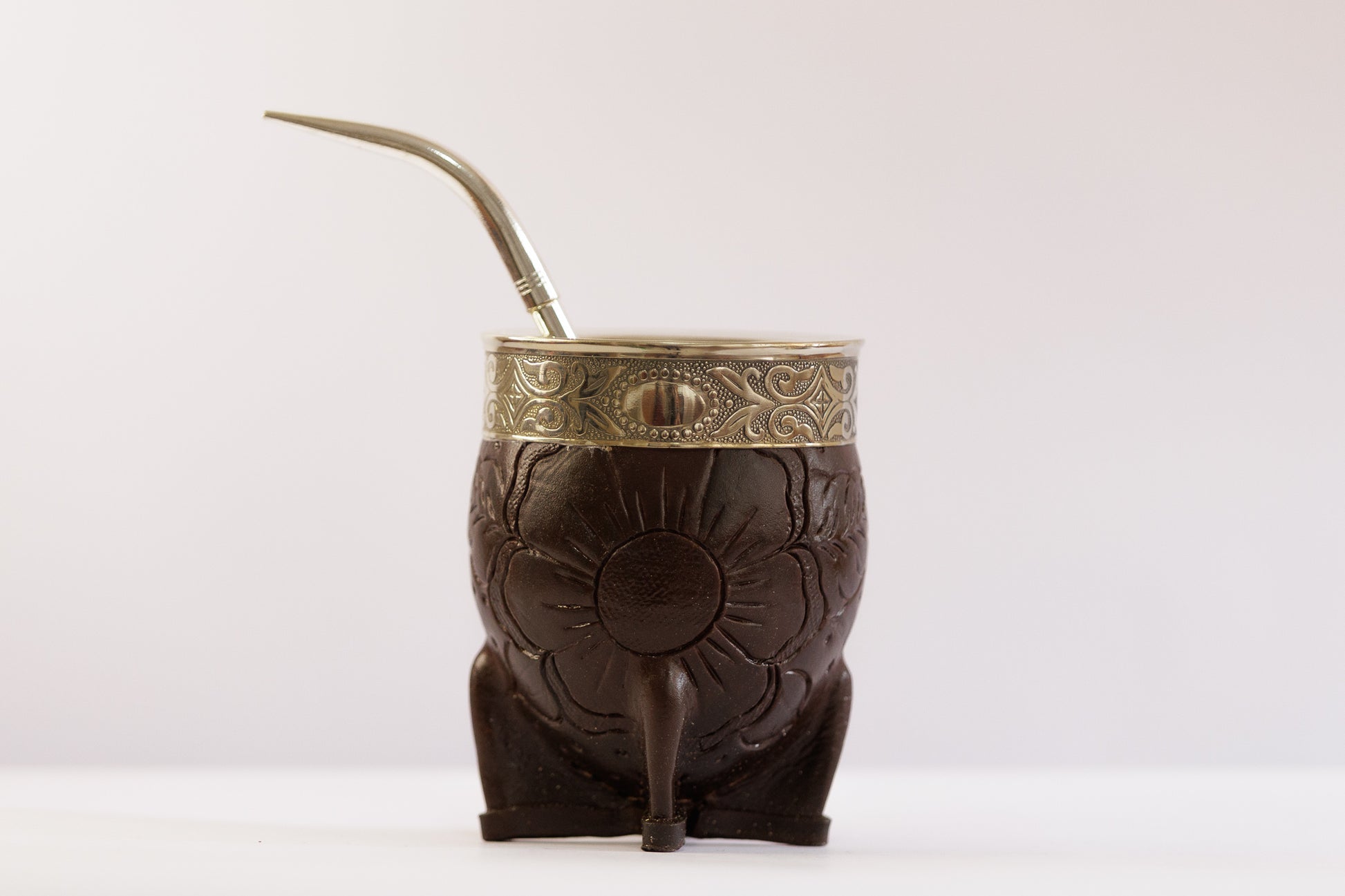 El mate Imperial Designe Deluxe es la elección perfecta para quienes buscan calidad y distinción. Fabricado en calabaza con virola y guarda de alpaca detalladamente labradas, está forrado en cuero premium marrón que realza su elegancia. Su base reforzada garantiza una mayor durabilidad y firmeza, ofreciendo una experiencia auténtica y sofisticada. Eleva cada momento de mate con esta pieza única que fusiona tradición, diseño y resistencia.