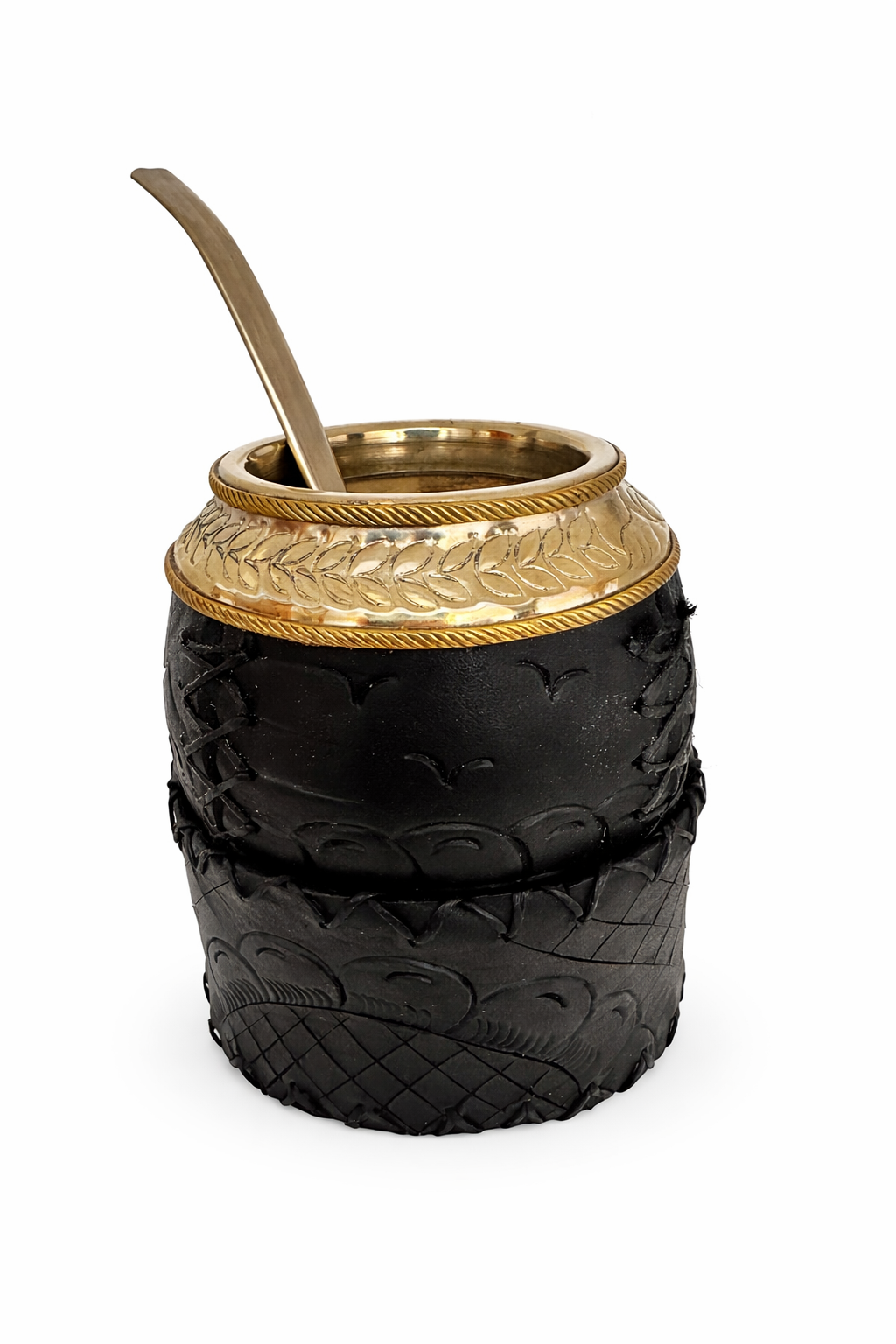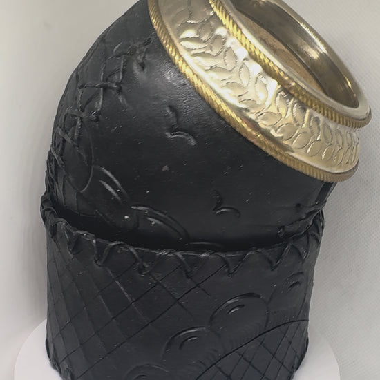 Mate Torpedo Aro Dorado: exclusividad artesanal en cada detalle. Este mate premium combina alpaca cincelada con un distintivo doble aro de bronce que realza su elegancia natural. La base de cuero tallada a mano completa una pieza única, diseñada para quienes aprecian la calidad sin compromisos. Un accesorio que trasciende lo funcional para convertirse en una declaración de estilo y sofisticación. Perfecto para disfrutar del mate con la distinción que mereces.