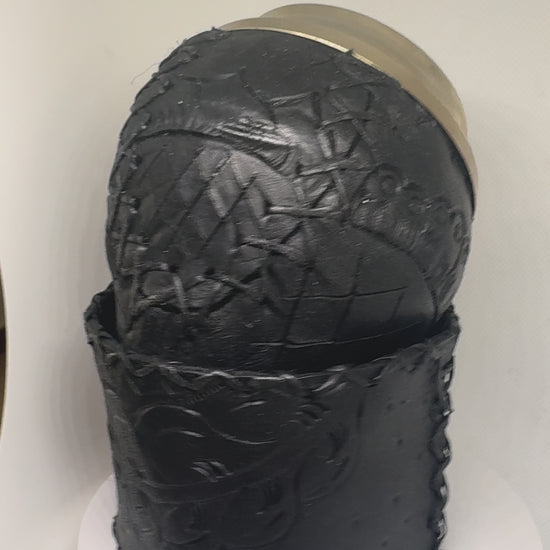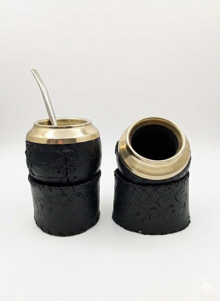 Mate Torpedo Criollo de alpaca repujada con base de cuero tallada a mano. Cada pieza es una obra artesanal única, elaborada con técnicas tradicionales y detalles meticulosos. La alpaca lisa brinda elegancia y durabilidad, mientras que la base de cuero, esculpida manualmente, añade autenticidad y carácter. Costura reforzada que garantiza resistencia. Ideal para quien valora la calidad, el trabajo manual y la tradición en cada sorbo.